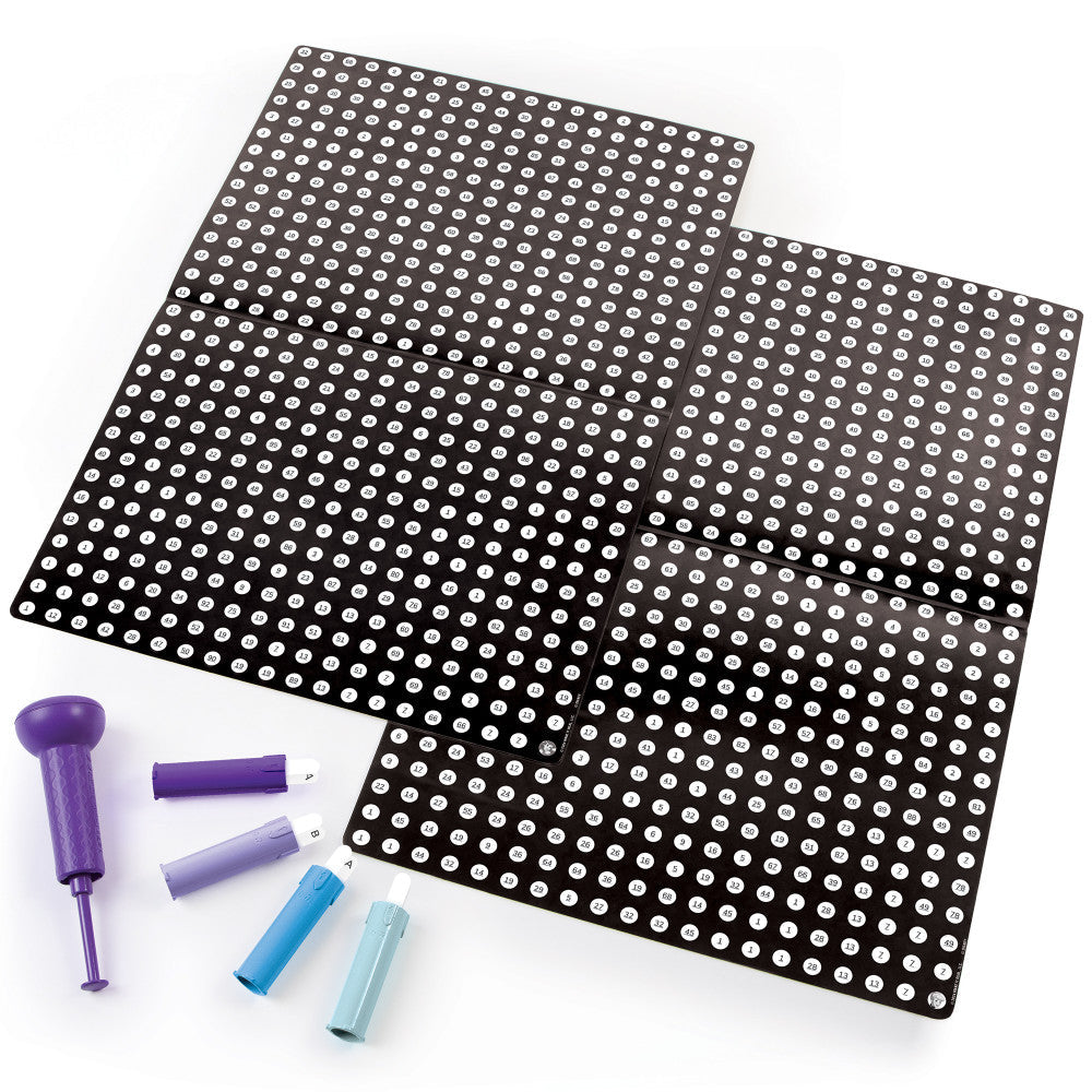 • INTERACTIVE PROCESS: Use the stamper to reveal dots on the poster. Match the number on the stamper with the corresponding number on the poster, align, and stamp to gradually uncover the beautiful designs.