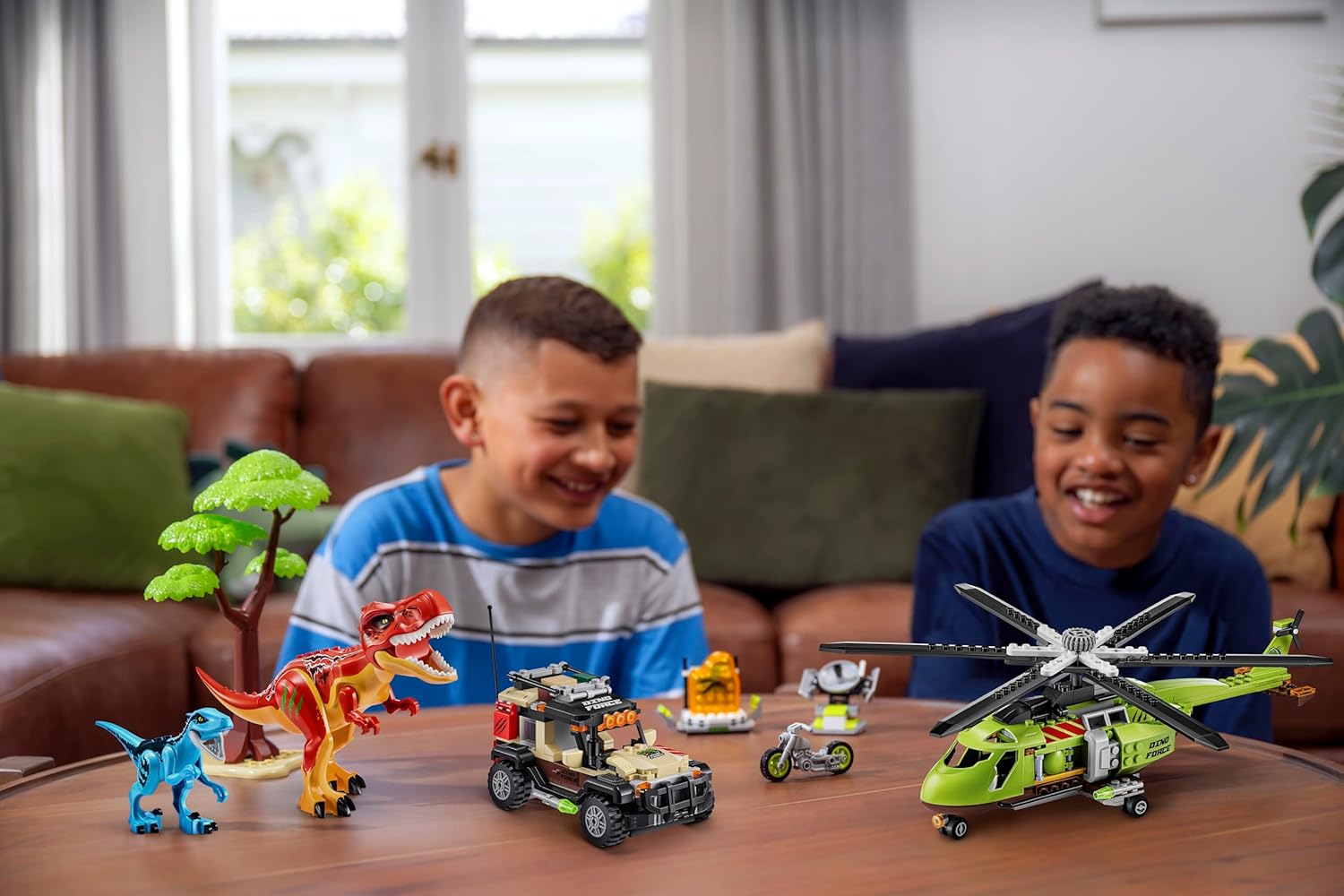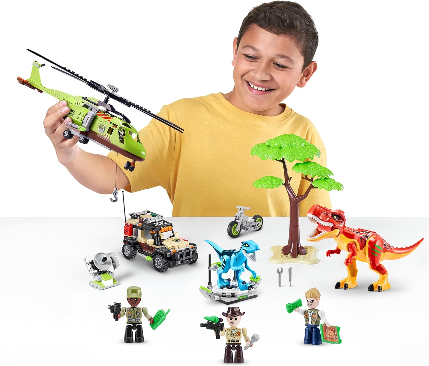 - 550+ Pieces: Includes 3 vehicles with working wheels, 2 dinosaurs , a tree, radars, 3 figruines and more!